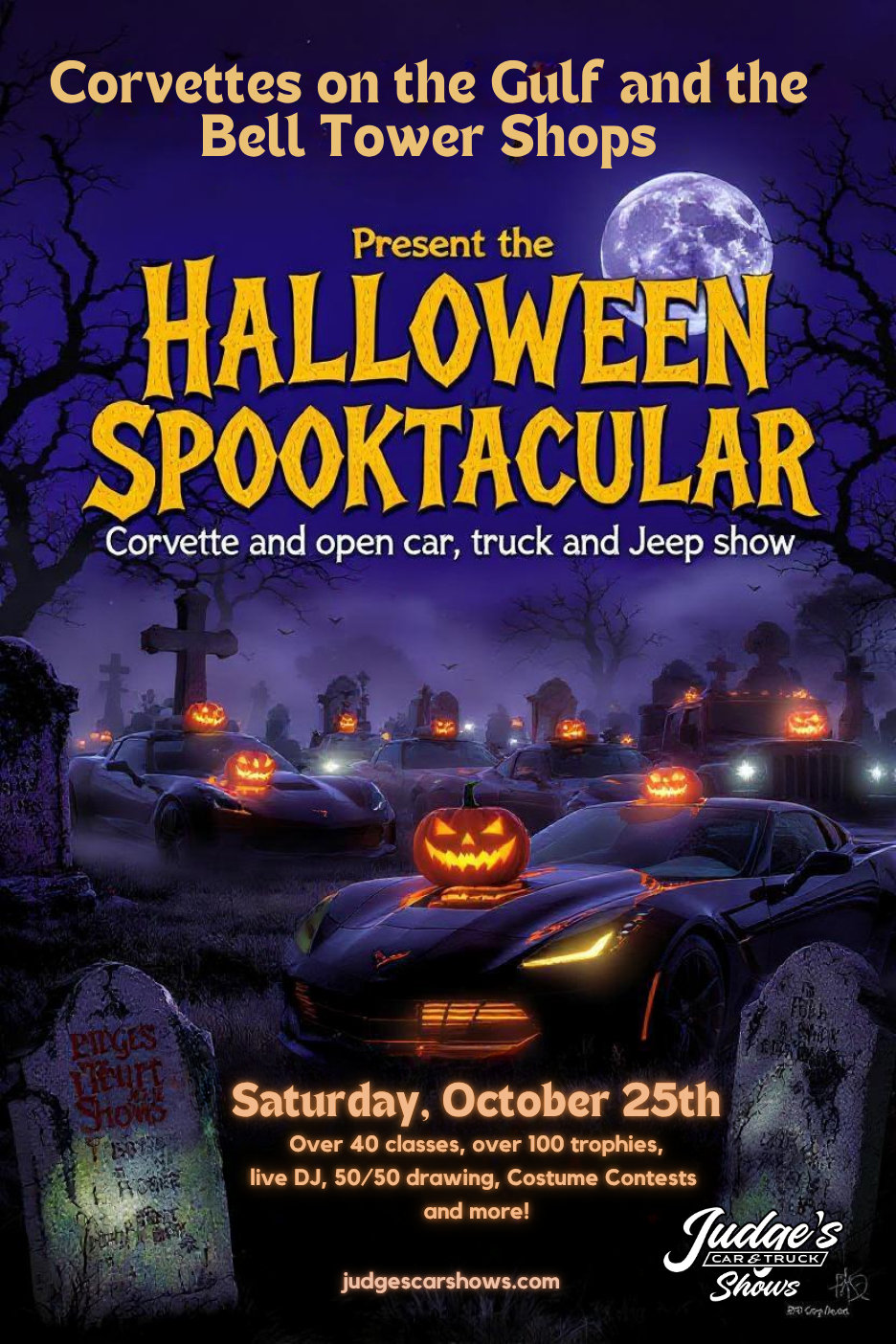 25, Saturday - [Open show] halloween spooktacular corvette & open car, truck & jeep show [ft myers]: 10am - 3pm. bell corvettes on the gulf and tower shops @ 13499 s. cleveland ave #227 in ft myers, fl 33907 flyer web page map